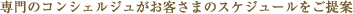 専門のコンシェルジュが、お客さまのご要望とご衣装からヘアスタイル・メイク・エステ・ネイルをご提案させていただき、お客さま専用のスケジュールを作成いたします。大切な日のために、主役の新婦様はもちろん、新郎様、ご両親様、ご出席される皆様にも、素敵な時を過ごしていただけるよう各種プランを取り揃えております。お気軽にお問い合わせください。